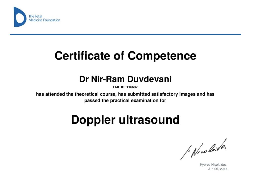 ד"ר דובדבני מוסמך לבצע הערכות זרימות דם עובריות ושילייתיות באולטראסאונד דופלר